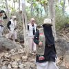 Ketua Bawaslu Kabupaten Dompu Swastari Haz dan rombongan berjalan kaki melewati kebun jati penuh bebatuan ketika memonitoring pencoklitan oleh Pantarlih wilayah Desa Ranggo, Kecamatan Pajo. (ist/lakeynews) Bawaslu...