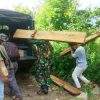 26 balok kayu sonokeling yang ditemukan dekat kampung Padende, Desa Bumi Pajo, diangkut dan diamankan di Makoramil 1608-05/Donggo. (sarwon/lakeynews.com) Kayu-kayu sonokeling tak bertuan ini di sembunyikan...