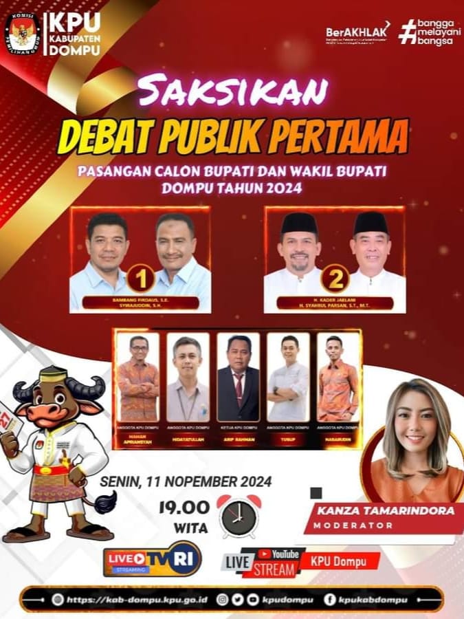 Catatan: Sarwon Al Khan, Dompu   RENCANA maupun jadwal Debat Publik Pertama dua Pasangan Calon Bupati dan Wakil Bupati (Wabup) Dompu 2024 sudah final. Dilaksanakan di Aula Pendopo Bupati,...