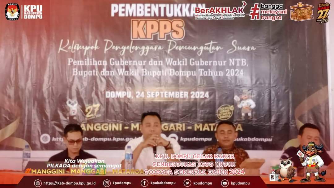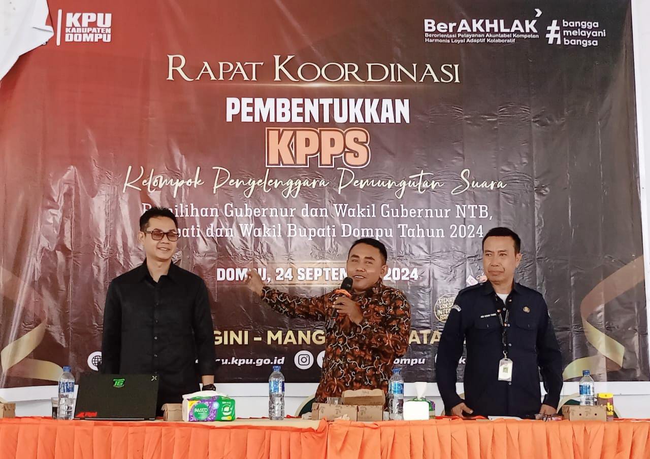 Ketua KPU Kabupaten Dompu Arif Rahman (baju putih) ketika memberikan sambutan dan membuka Rakor Pembentukan KPPS Pilkada 2024 di Gedung Samakai, Selasa (24/9/2024). (ist/lakeynews.com) DOMPU – KPU...