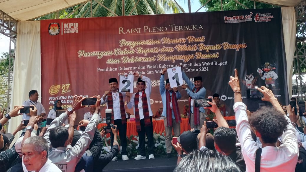 Detik-detik momen penarikan nomor urut dua Paslon Bupati dan Wakil Bupati Dompu 2024-2029. (tim/lakeynews.com) Pilkada Dompu 2024 – DOMPU – Penarikan Nomor Urut Paslon Bupati dan Wakil...