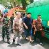 Kepala Distanbun Kabupaten Dompu Muhammad Syahroni (batik, depan kanan), mendampingi Wakil Bupati H. Syahrul Parsan meninjau penyaluran pupuk subsidi di Gudang Pupuk Bara, Kecamatan Woja, Kamis (11/1/2024)....
