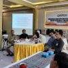 Ketua Bawaslu Kabupaten Dompu Swastari Haz (jilbab), didampingi dua Komisioner; Wahyudin dan Syafruddin, serta Komisioner KPU Agus Setiawan dan Kasubag Administrasi Sekretariat Bawaslu Agus Awaluddin....