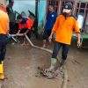 FOTO ATAS DAN BAWAH: Petugas BPBD Kabupaten Dompu menggunakan mobil Damkar, pagi tadi melakukan pembersihan lumpur di rumah dan lingkungan warga Magenda, Kelurahan Potu, Kecamatan Dompu. (Foto: tangkap...