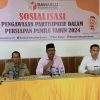 DARI KIRI: Ketua Bawaslu Kabupaten Dompu Irwan (tengah), diapit Anggota Bawaslu sekaligus Kordiv Hukum, Pencegahan Partisipatif Masyarakat dan Humas Wahyudin dan Koordinator Sekretariat Bawaslu Agus Awaludin....