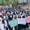 FOTO ATAS DAN BAWAH: Ratusan Nakes Non ASN di Kabupaten Dompu yang kembali turun ke jalan, Kamis (22/9). Mereka menuntut agar data mereka dimasukan sebagai peserta tes PPPK. (tim/lakeynews.com) (tim/lakeynews.com) Ratusan...