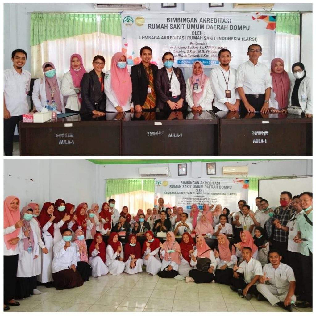 Diketahui, Bimbingan Akreditasi RSUD Dompu Tim Lembaga Akreditasi Rumah Sakit Indonesia (LARSI) selama tiga hari. Mulai tanggal 5 sampai 7 Juni 2023.