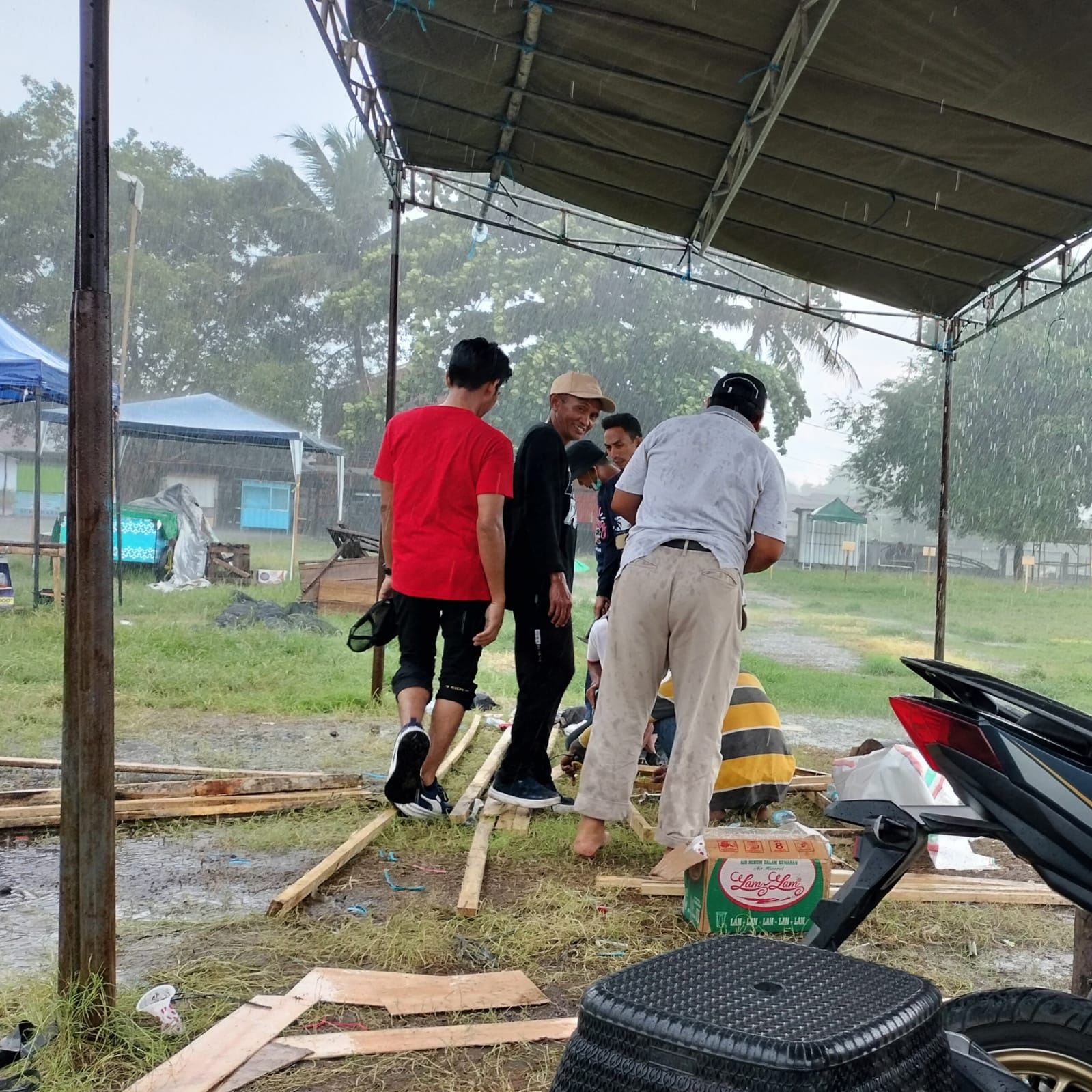 Meski hujan turun dengan deras sejak sekitar pukul 14.00 Wita, tidak menyurutkan semangat Pak Daeng bersama Pamong Budaya Dedi Asyik, Komeng, dan lainnya.